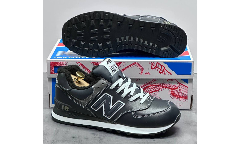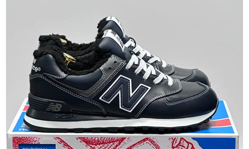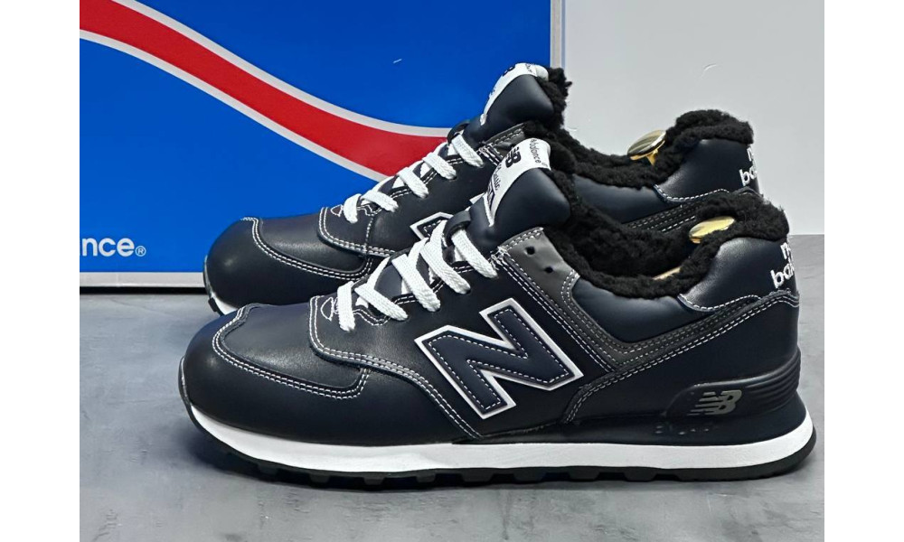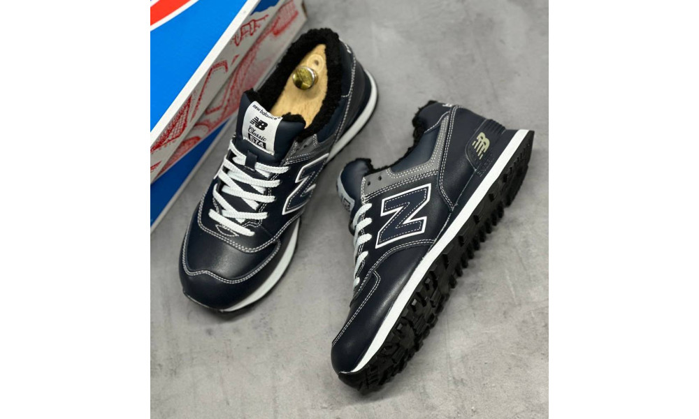 New Balance 574 Leather Dark Blue зимние